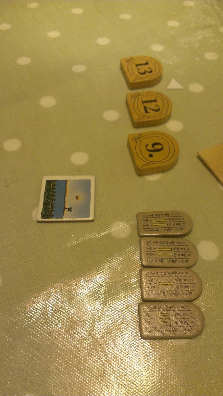 After this, we looked for something to fill an hour or two. We chose Ra and what a unique game it was. Not just because I won (my first leaderboard win on Ra) but because of the very few successful bids that Andy made. He made none in the first round, two in the second, and then none again in the final round. Unsurprisingly, he scored fewer points than he began with.